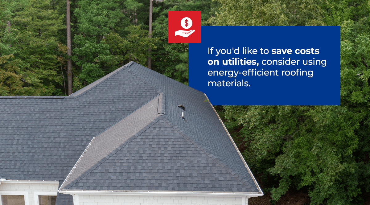 When selecting your materials, focus on quality. Over the long run, you’ll save money because your roof will last longer, and you’ll have fewer repair costs in the future. If you’d like to save costs on utilities, consider using energy-efficient roofing materials. Over time, this can save you energy costs while protecting your home.